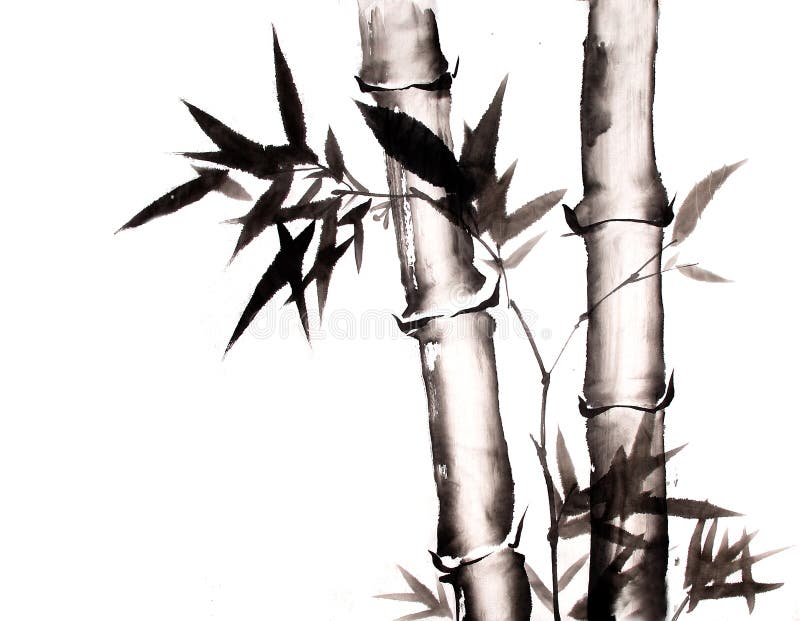 Bamboo Ink Painting Hand Drawn Stock Illustration - Illustration Of